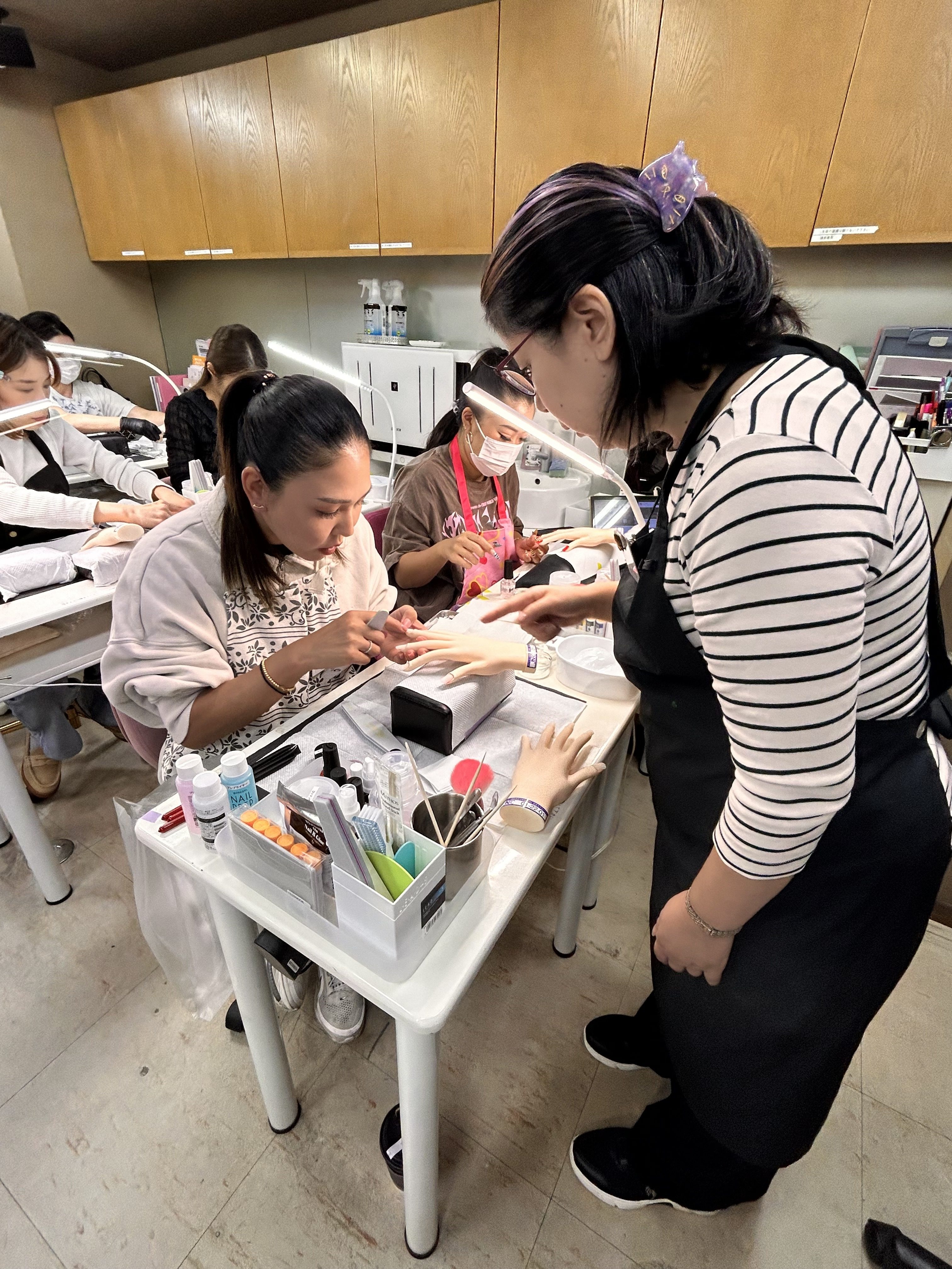 - 相モデルでの人間の手での実践練習やモデルハンドを用いた反復練習でサロン実務に直結したスキルを習得。