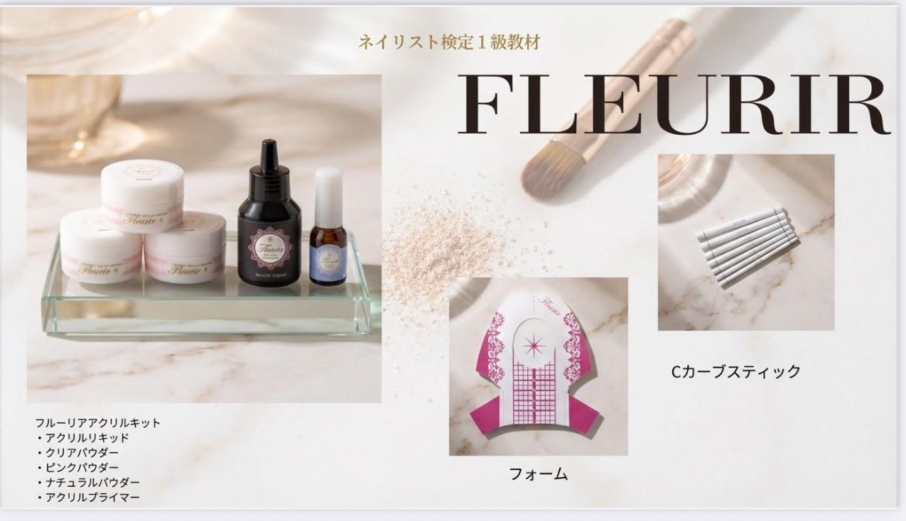 当校では入学するとすぐにプロ仕様の教材が手に入ります。KOKOISTジェルやフルーリアのアクリルキットなど、