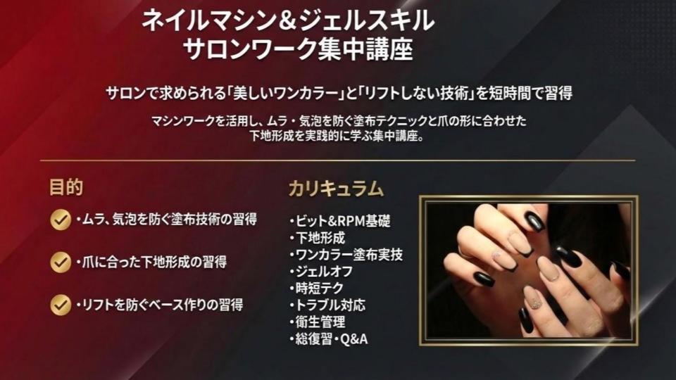 ネイルマシン技術に特化した講習をご紹介します。