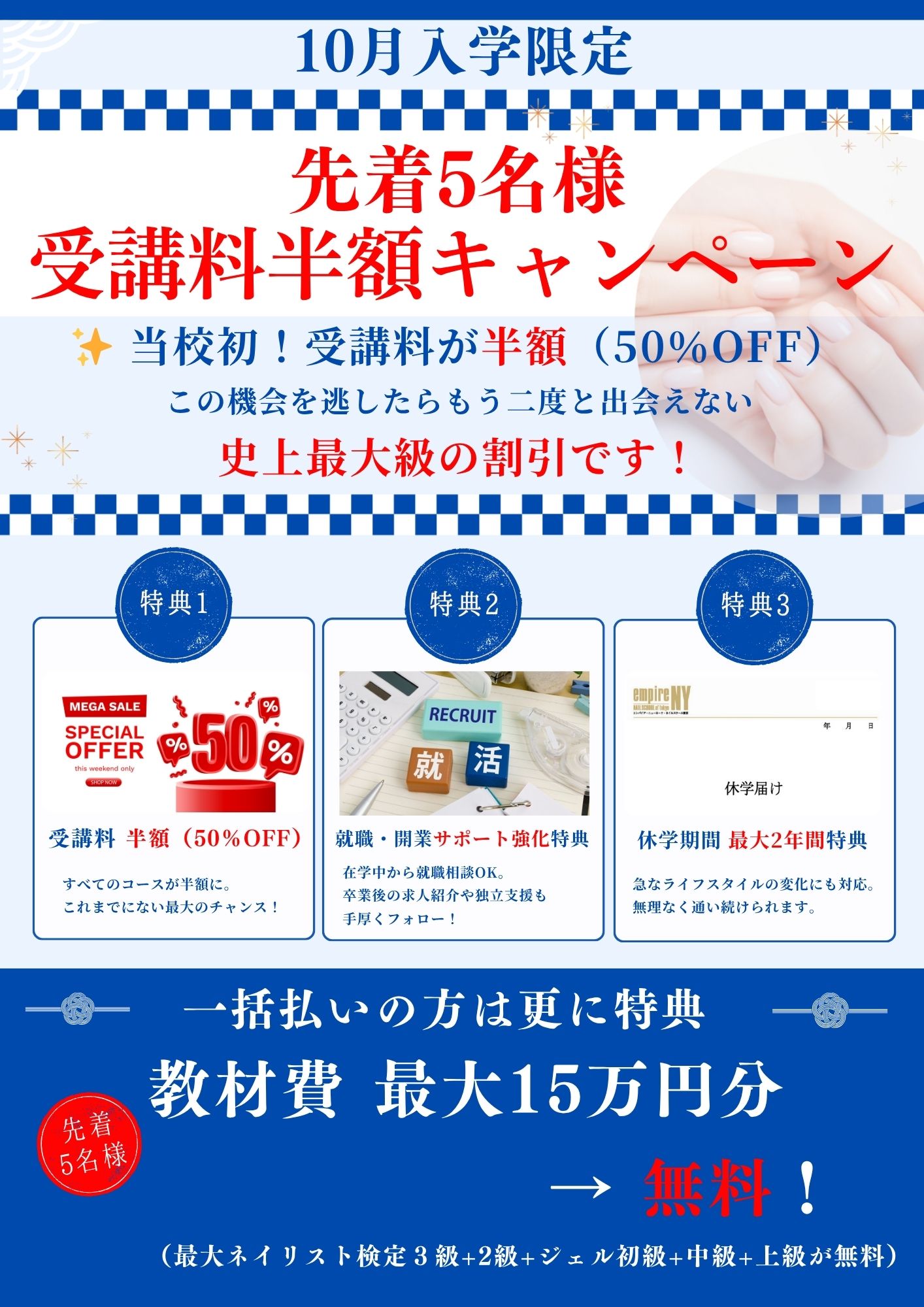 「受講料半額+教材費無料」 は、10月だけの衝撃企画。