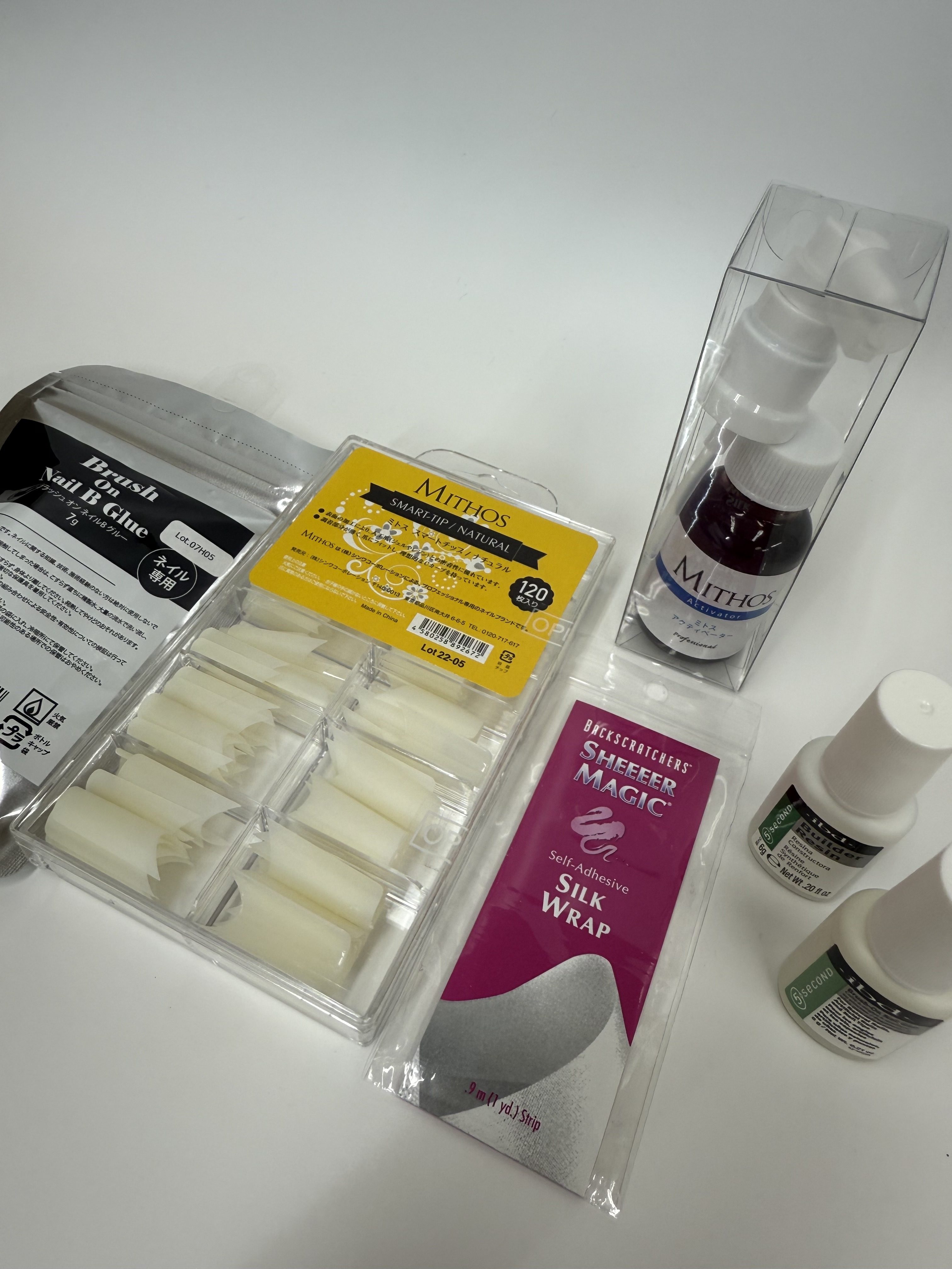 | 検定2級 | ネイルチップ(100枚アソート)、グルー、レジン、シルクラップ、アクティベーター | チップ装着・補強・補修技術を集中的に学習。アソートによる形状別の応用練習と強度設計の習得に最適。 |