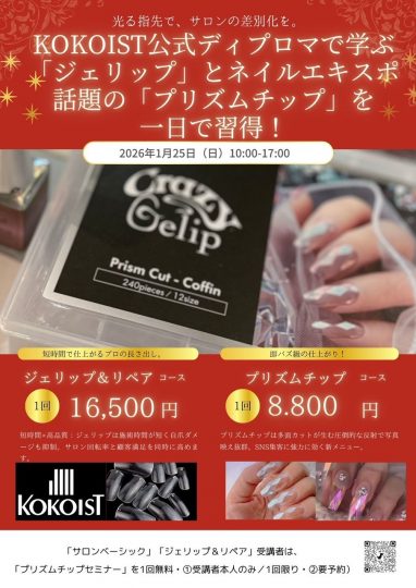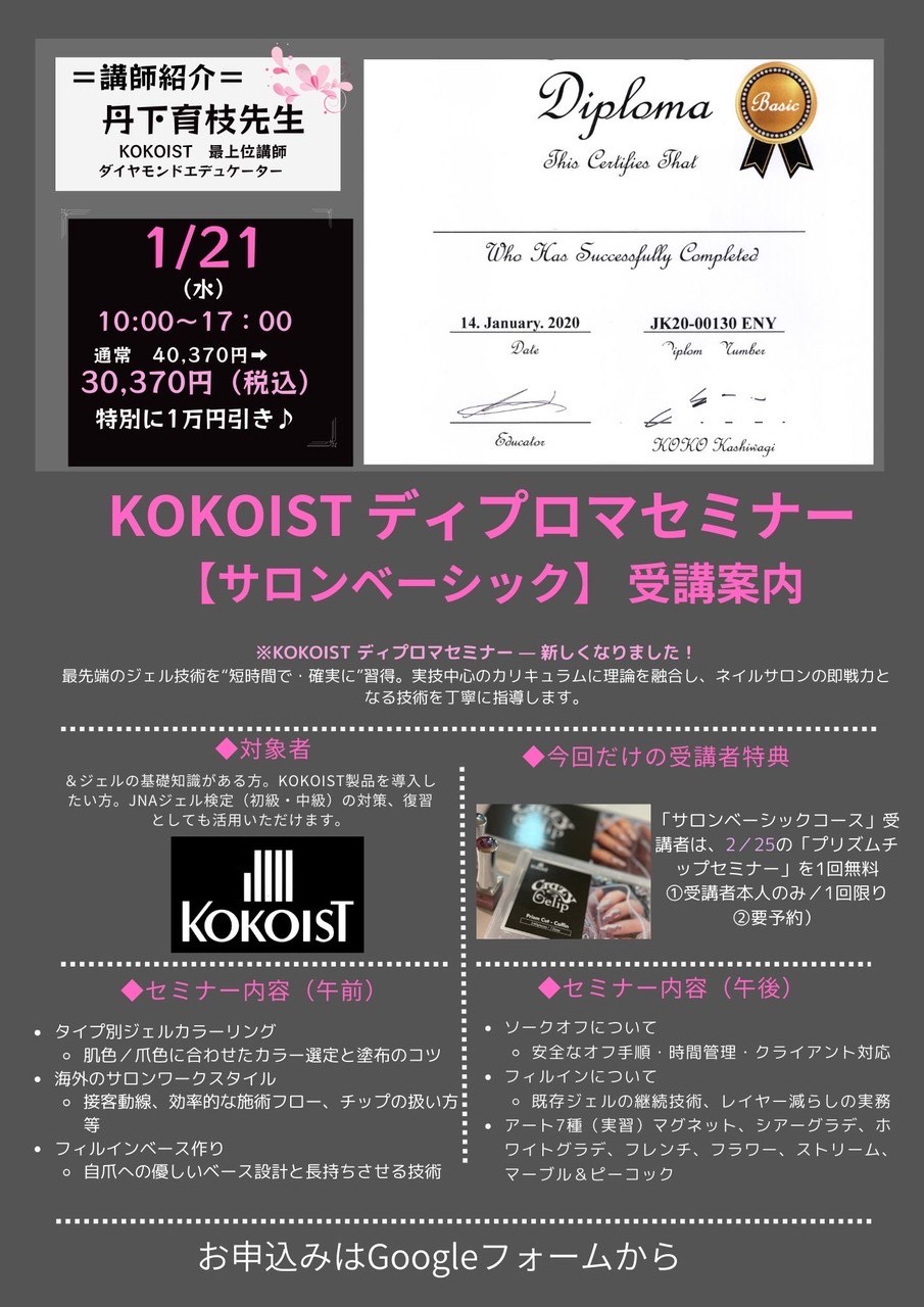 “headline”: “KOKOIST公式ディプロマセミナー — ベーシック・ジェリップ&リペア・プリズムチップ”,